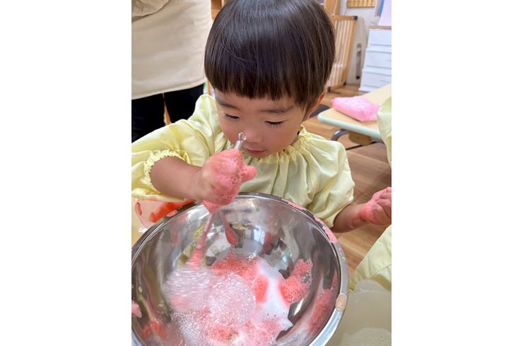 また、当園の保育者は、お子さまをお預かりしている時間、『保育園でのママやパパとなりお子さまの成長を見守る育児担当制保育』を実施しております。一日一日成長していく日々の中で、『出来た喜び』も、『寂しくて泣いてしまう時にも』いつも傍で担当保育者が見守ってくれ、子どもの気持ちを理解して寄り添ってもらえる関係だからこそ、『ママみたい』『パパみたい』と、愛着関係が深まります。そして、3歳児以上は、『対話を行う。みんなで話し合う。』ことを大切にし、『伝える力』『伝えようとする心』『みんなでやってみようとする探求心』が育つよう、異年齢の中での生活を行っています。