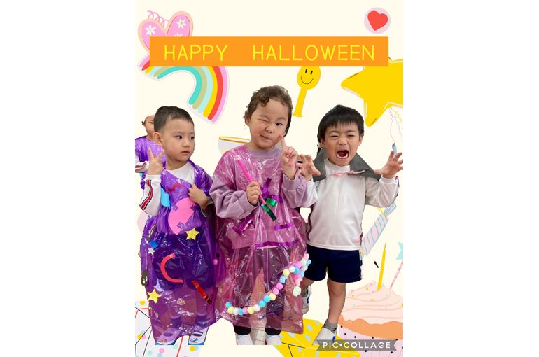 つき組さん(2歳児)も今日は、そら組(3~5歳児)のお友だちと一緒にハロウィン散歩です♪
