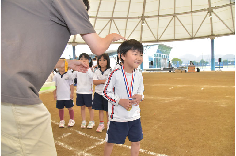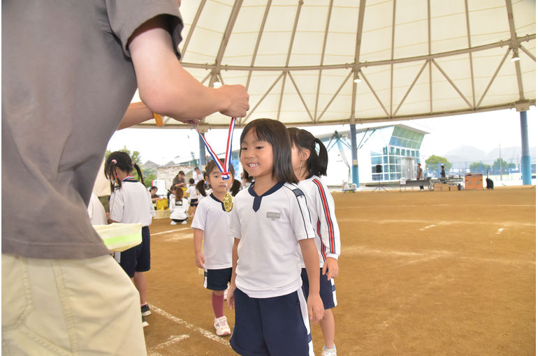 楽しい親子競技で、お家の人からパワーをもらった子ども達、